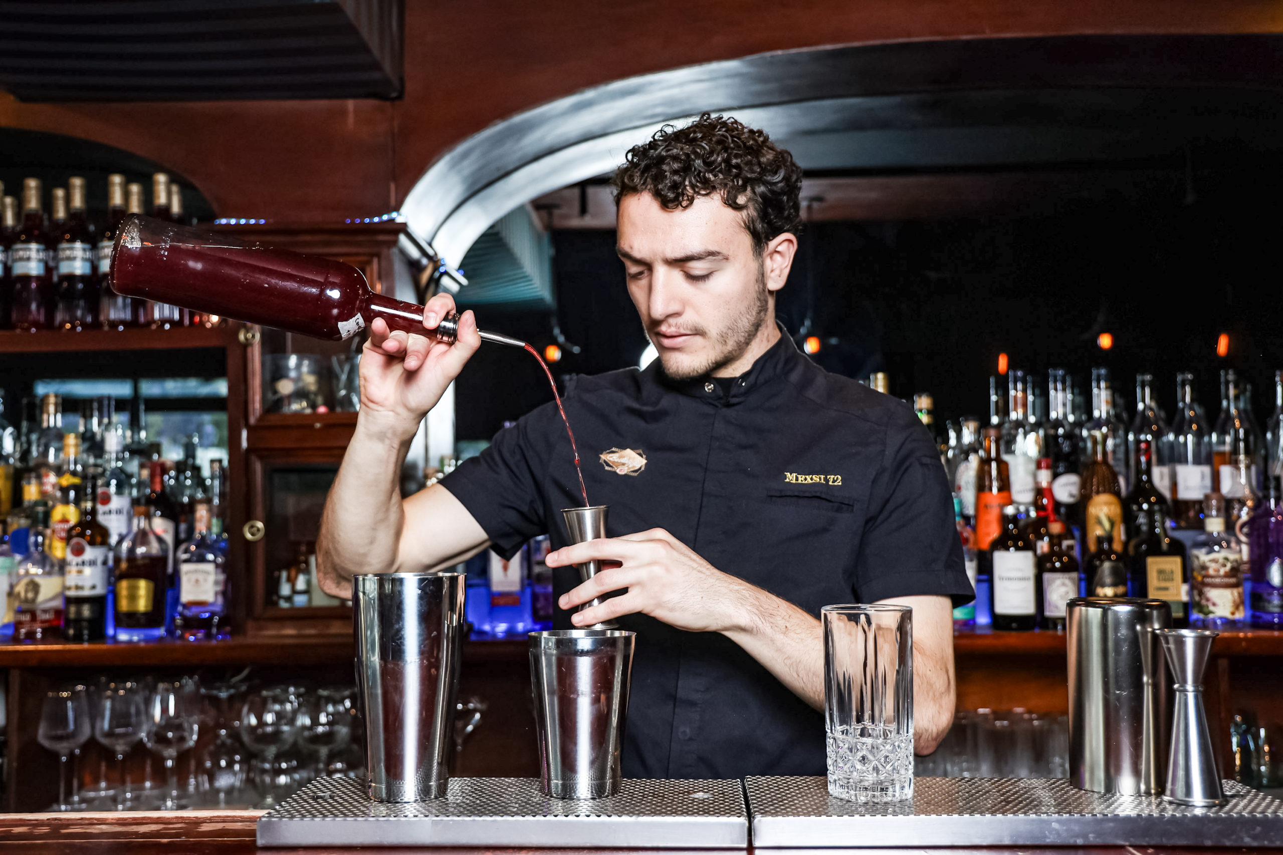 - Agrega los destilados, licores y jarabes en el shaker