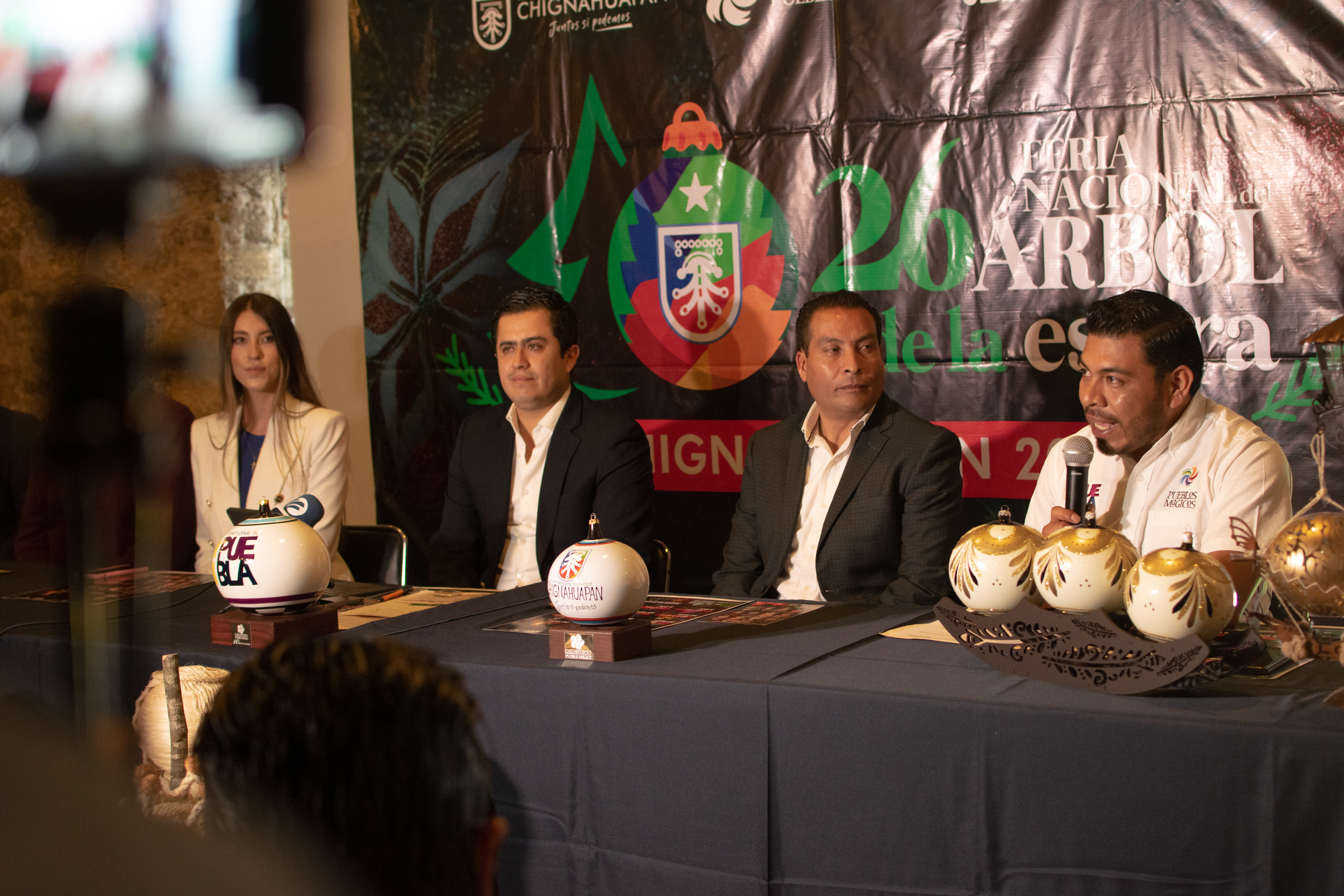 En rueda de prensa, el presidente de Chignahuapan Lorenzo Rivera Nava, acompañado del director de turismo, Juan Carlos Barrientos y el director de desarrollo económico de Chignahuapan, Manuel Morales, invitaron a los poblanos y poblanas a la Feria de la Esfera y el Árbol 2022.