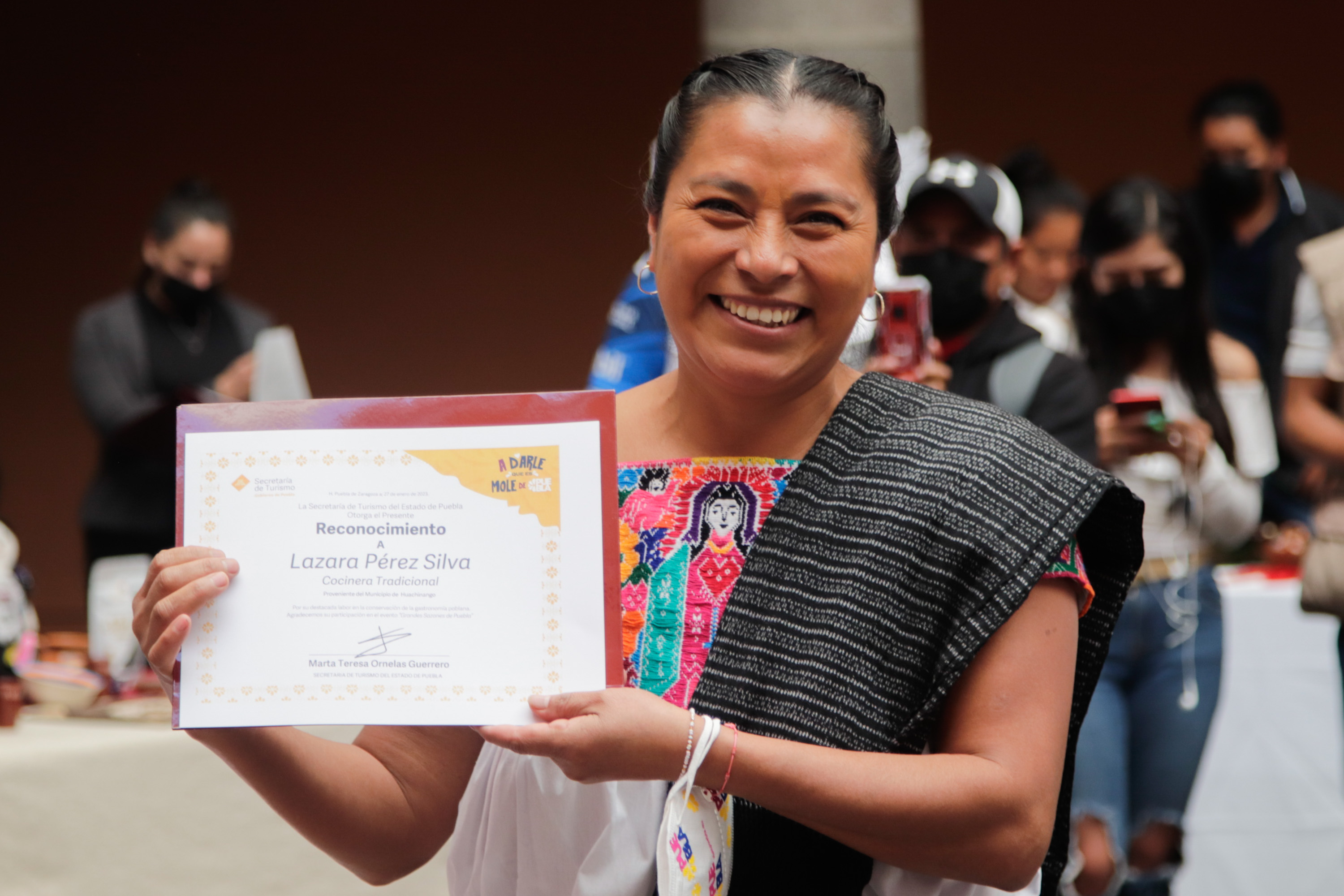 Como parte de las actividades de promoción en el estado, la secretaria de Turismo, Marta Ornelas Guerrero entregó reconocimientos a 15 cocineras tradicionales de municipios como Cholula, Cuetzalan, Chignahuapan, Huachinango, Pahuatlán, Tlatlauquitepec, Zacatlán y Teziutlán, quienes preservan recetas típicas del mole poblano, heredadas por generaciones y difunden la riqueza gastronómica de Puebla.