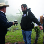 El recorrido comenzó con una desafiante caminata por los cafetales de Rancho Paredón —y digo desafiante porque, debido a la neblina, era muy difícil ver el camino, sin embargo, se logró el objetivo y tuve el privilegio de conocer sus cafetales—, que se encuentran a 1,500 metros sobre el nivel del mar. Don Adán explicó que este rancho mide 60 hectáreas, pero solo utiliza quince hectáreas para la siembra, cosecha y producción de café, las cuales trabaja en conjunto con algunas personas de la comunidad de Naupan.