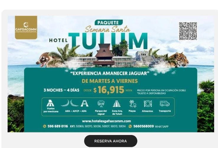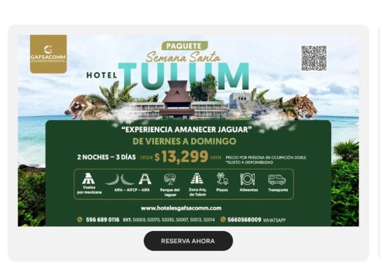 Todos los paquetes incluyen vuelos desde el Aeropuerto Internacional Felipe Ángeles (AIFA) con Mexicana, traslados, hospedaje en los Hoteles Tren Maya y alimentación.