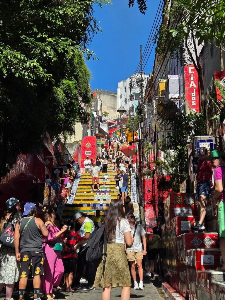 La Escalera de Selarón es uno de los lugares más originales y vibrantes de Río de Janeiro, y se ha convertido en un símbolo del arte popular y de la identidad multicultural de la ciudad. Ubicada entre los barrios de Lapa y Santa Teresa, esta famosa escalera de 215 peldaños está completamente decorada con más de 2,000 azulejos de cerámica de colores, provenientes de más de 60 países.