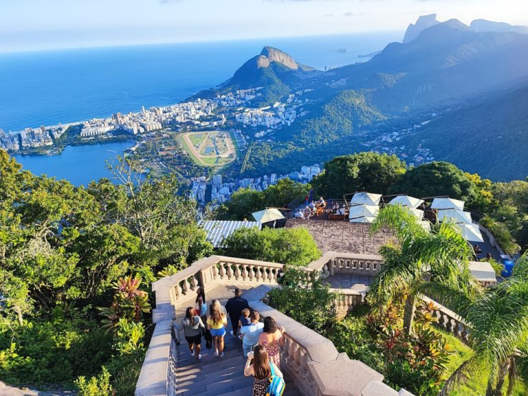 Para llegar hasta la cima del Corcovado, los visitantes pueden tomar un tren que atraviesa el Parque Nacional de Tijuca —una de las selvas urbanas más grandes del mundo— o subir por carretera, disfrutando del paisaje natural. Una vez en la cima, las vistas panorámicas de Río de Janeiro son espectaculares: se pueden ver la bahía de Guanabara, las playas de Copacabana e Ipanema, el Pan de Azúcar y gran parte de la ciudad.
