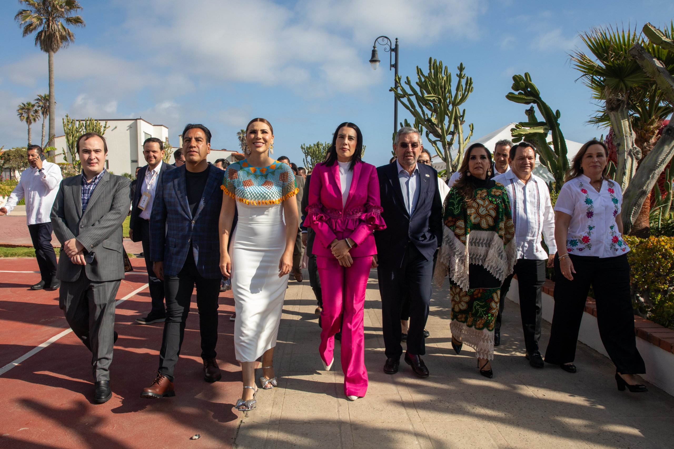 La secretaria de Turismo de México, Josefina Rodríguez Zamora, y la gobernadora de Baja California, Marina del Pilar Avila Olmeda, arrancaron las actividades de la edición 49 del Tianguis Turístico 2025 en el Baja California Center.