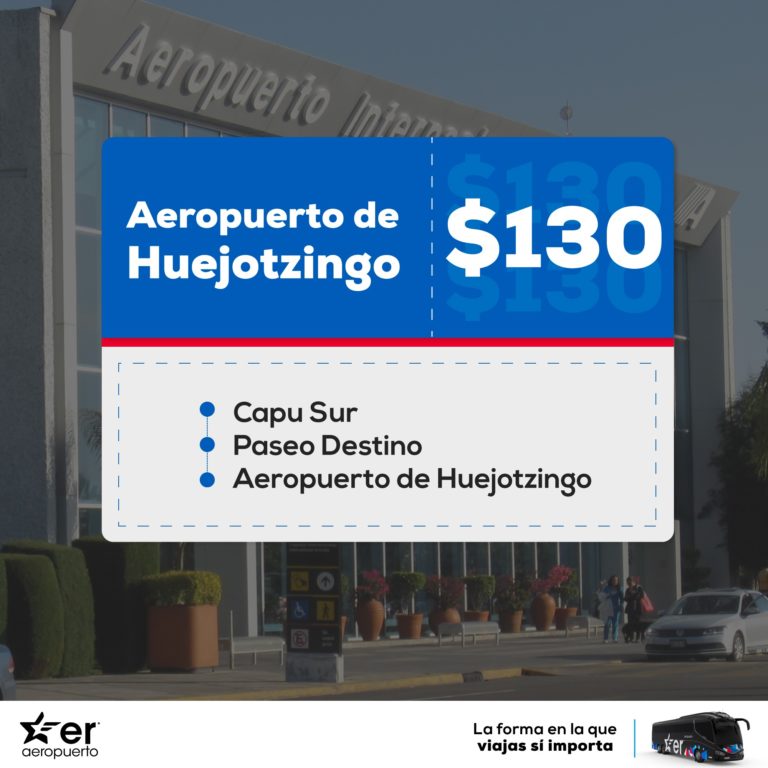 Estrella Roja ofrece una alternativa cómoda, segura y accesible para ir desde Puebla hasta el aeropuerto, ahora el taxi será cosa del pasado para llegar a tomar tu vuelo. Ahora ofrece salidas al Aeropuerto de Huejotzingo desde las 05:30 A. M., en las terminales de CAPU Sur y Paseo Destino, por solo 130 pesos.
