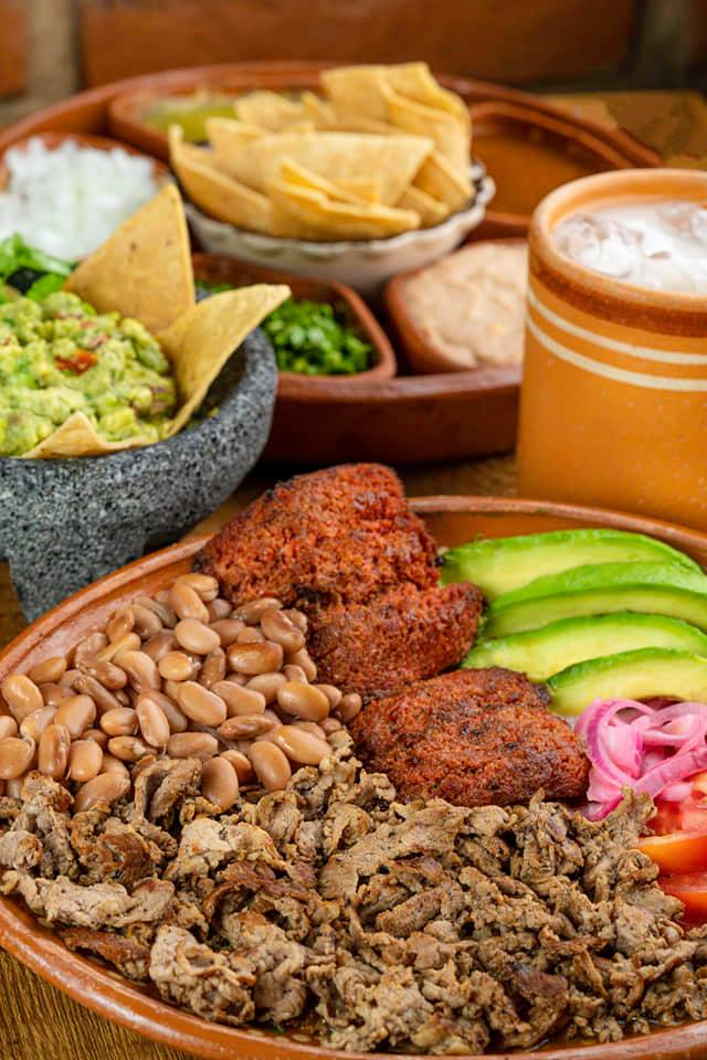 En este restaurante puedes disfrutar de la clásica carne en su jugo, pero también tienen una amplia variedad de antojitos mexicanos, como queso fundido, quesadillas, asada, adobada, pollo a la plancha, arrachera, tacos y mucho más.