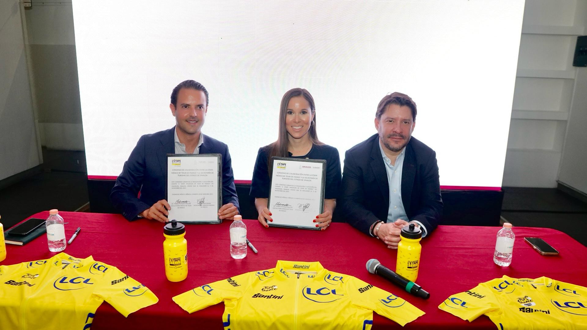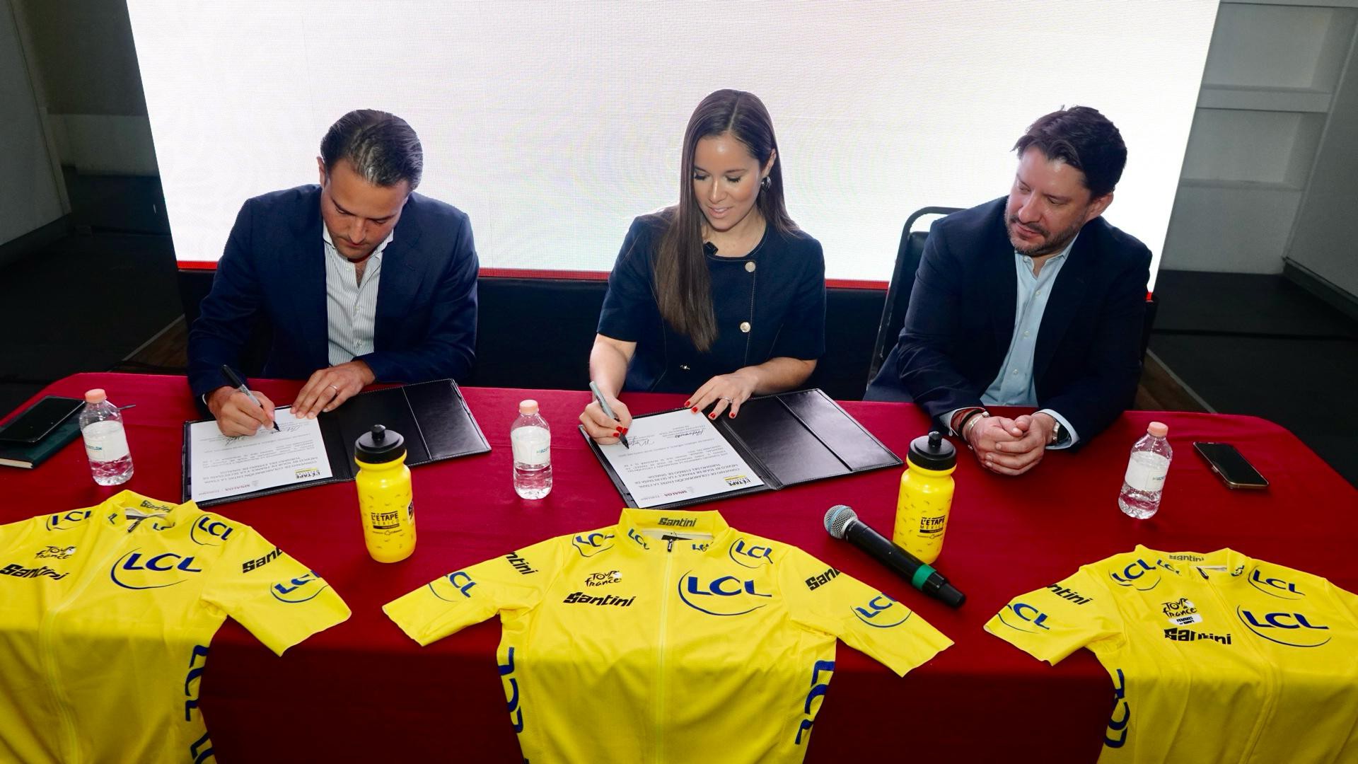 Durante la conferencia, la secretaria de Turismo estuvo acompañada por Mario Mitrani Melgar, CEO de L’Étape México by Tour de France, y Julián Levin, director general de Comunicación de CiBanco. En conjunto, realizaron la firma oficial del convenio que sella la realización del evento en la entidad.