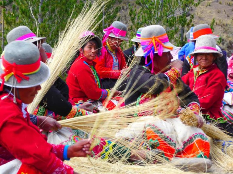 Antes de iniciar la construcción, se lleva a cabo un ritual andino de ofrenda a la Pachamama, la Madre Tierra. Un sacerdote tradicional, conocido como paqo, coloca sobre un altar hojas de coca, alimentos y otros elementos simbólicos para agradecer y pedir permiso por intervenir en el paisaje. Este acto no solo tiene un valor espiritual, también establece un momento de conexión profunda entre las personas, su entorno y sus creencias.