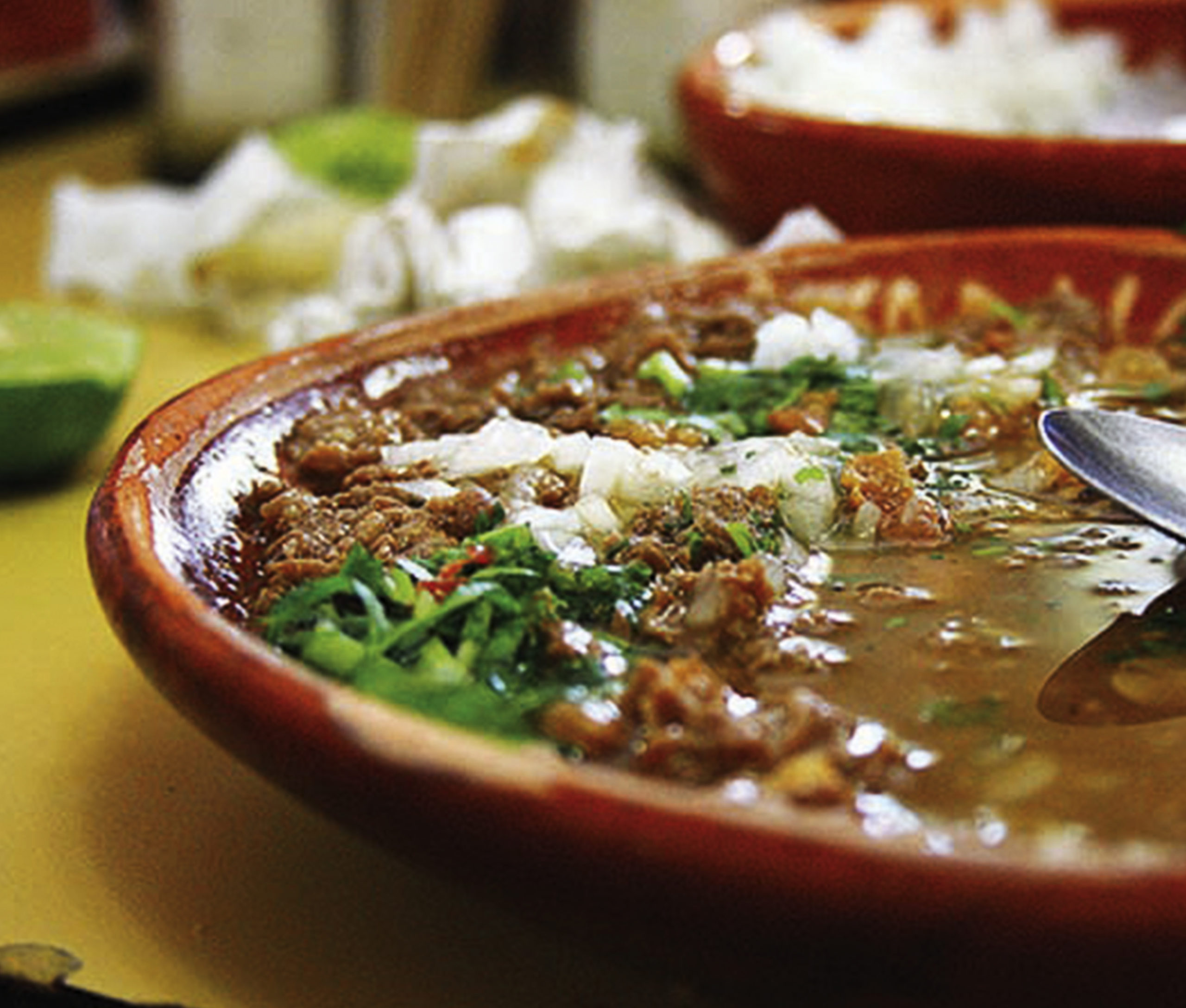 Este platillo típico de Guadalajara combina carne de res, tocino, frijoles y especias en un caldo espeso y lleno de sabor. Se sirve caliente, con cebolla, cilantro y unas gotas de limón, logrando un platillo completo y reconfortante.