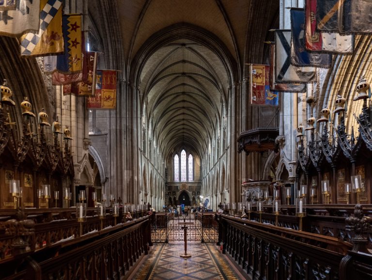 Su interior es impresionante, con vitrales coloridos, detalles góticos y monumentos históricos, incluyendo la tumba del escritor Jonathan Swift. El edificio ha sobrevivido incendios, reformas y siglos de historia. Hoy, además de ser un lugar de culto, es un sitio de encuentro con la historia espiritual y cultural de Dublín.