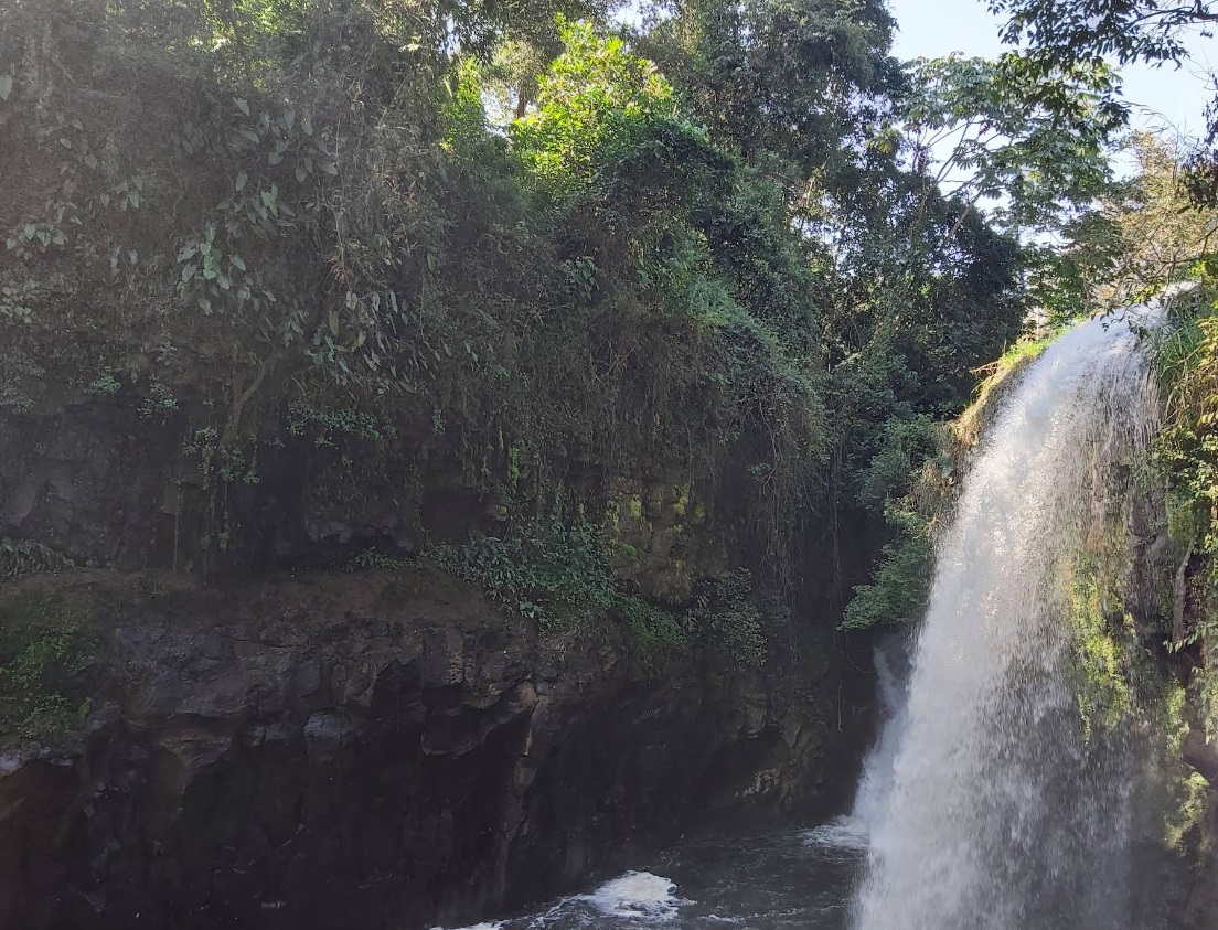 Un sendero natural permite incluso cruzar por detrás de la cortina de agua, una experiencia refrescante que ofrece otra perspectiva del lugar. Desde ese punto, se puede observar cómo la luz del sol atraviesa la neblina creada por la caída de agua, creando pequeños arcoíris que desaparecen en segundos. Es un sitio que se disfruta con calma, ideal para hacer una pausa, tomar fotografías, hacer un picnic o simplemente sentarse a contemplar el entorno.