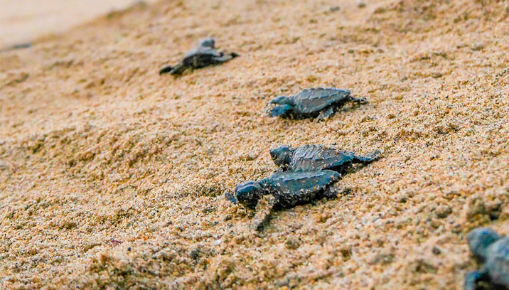 De las siete especies conocidas en el mundo, cuatro habitan en las costas nayaritas: la golfina, la laúd, la carey y la verde. Entre junio y noviembre, miles de crías comienzan su primer y más desafiante viaje al mar, y tú puedes ser parte de ese momento único.
