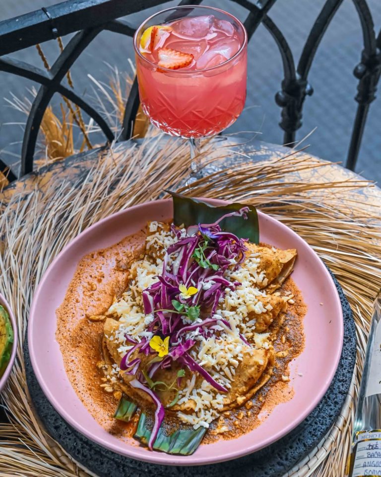El diseño del lugar refuerza esta conexión con lo auténtico. Muros de ladrillo sin recubrimiento, mesas de madera clara, sillas artesanales tejidas con tule y lámparas de fibras naturales conforman un entorno que transmite calidez, identidad y arraigo. Elementos vegetales y textiles mexicanos terminan de dar forma a un ambiente que invita a la pausa, el asombro y el disfrute.