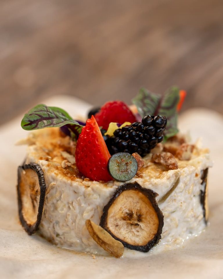 y bowl de açai con granola artesanal, miel y frutas vivas en $150 pesos.