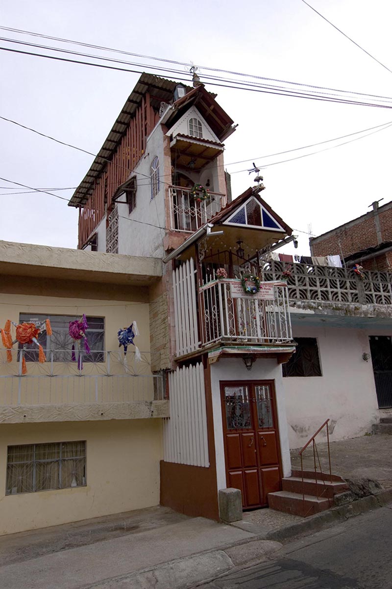 Está en el barrio San Juan Bautista, uno de los más antiguos de Uruapan. La pintaron con colores llamativos para que nadie se la pase de largo.