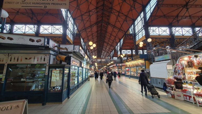 En su planta baja se encuentran los tradicionales puestos de frutas, verduras, embutidos, especias y panes. Aquí se pueden adquirir productos típicos como el salami húngaro, el paprika, el foie gras o botellas de pálinka. Subiendo al segundo piso, el ambiente se transforma: aparecen tiendas de recuerdos, bordados, muñecas tradicionales y, sobre todo, pequeños comedores donde probar los sabores más auténticos de la cocina húngara.