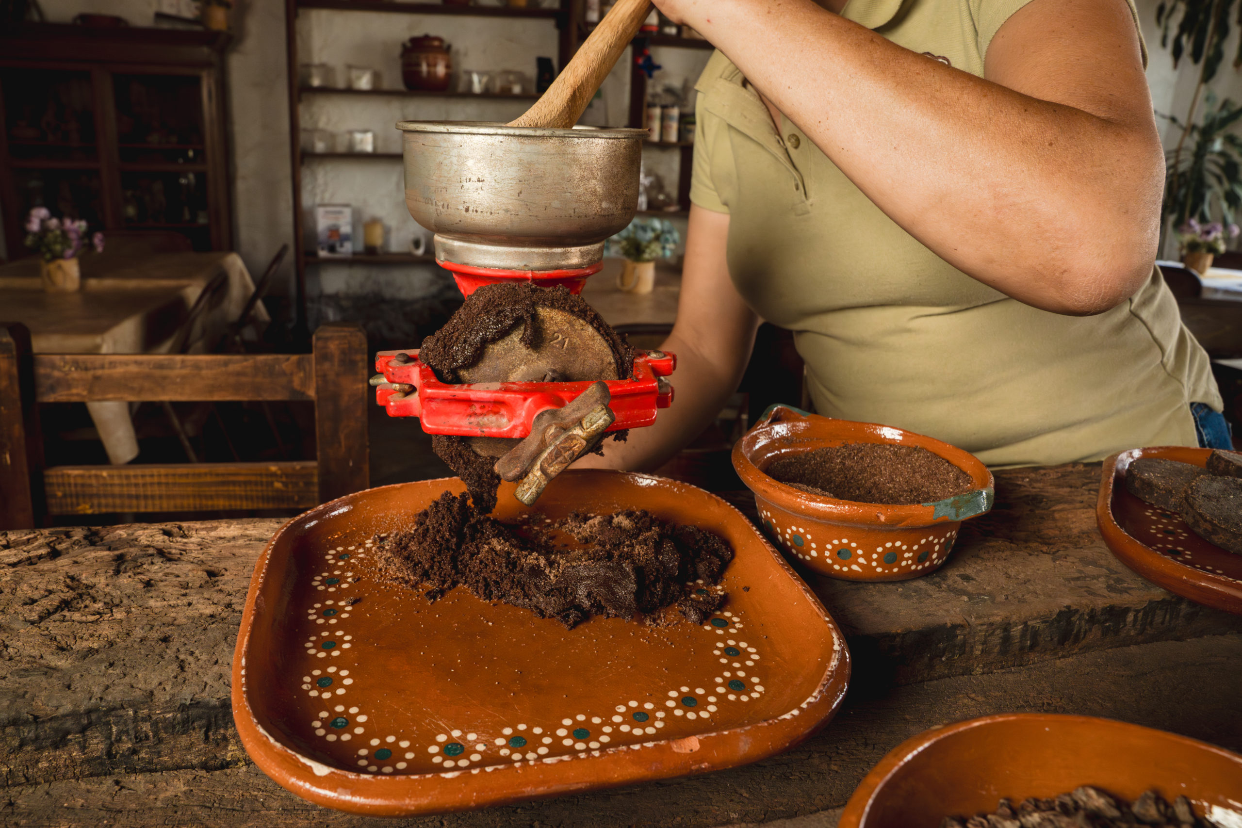 En Amatlán de Cañas, uno de los grandes tesoros culinarios es la preparación artesanal de chocolate y cacahuate. Ambos tienen una fuerte conexión con la cultura local y quienes los elaboran lo hacen con dedicación y cariño. Uno de los puntos clave es el Corredor del Chocolate, donde la señora Olga Lidia recibe a los visitantes para mostrar cómo se tuesta el cacao en comales de barro y se muele en piedra volcánica hasta formar una pasta espesa, oscura y fragante.