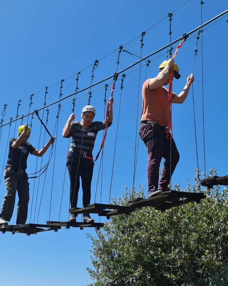 Pero Alpinia no se detiene en lo mágico del laberinto. Para los amantes de la adrenalina, hay tirolesas que se lanzan entre los árboles —una de 330 metros y otra de 750—, un circuito canopy de siete pasos elevados, gotcha, pista comando, rapel y tiro con arco. Si bien algunas de estas actividades tienen un costo extra, la emoción que generan compensa cada peso. Aquí, los cuerpos se mueven, las risas se elevan y los temores se transforman en logros.