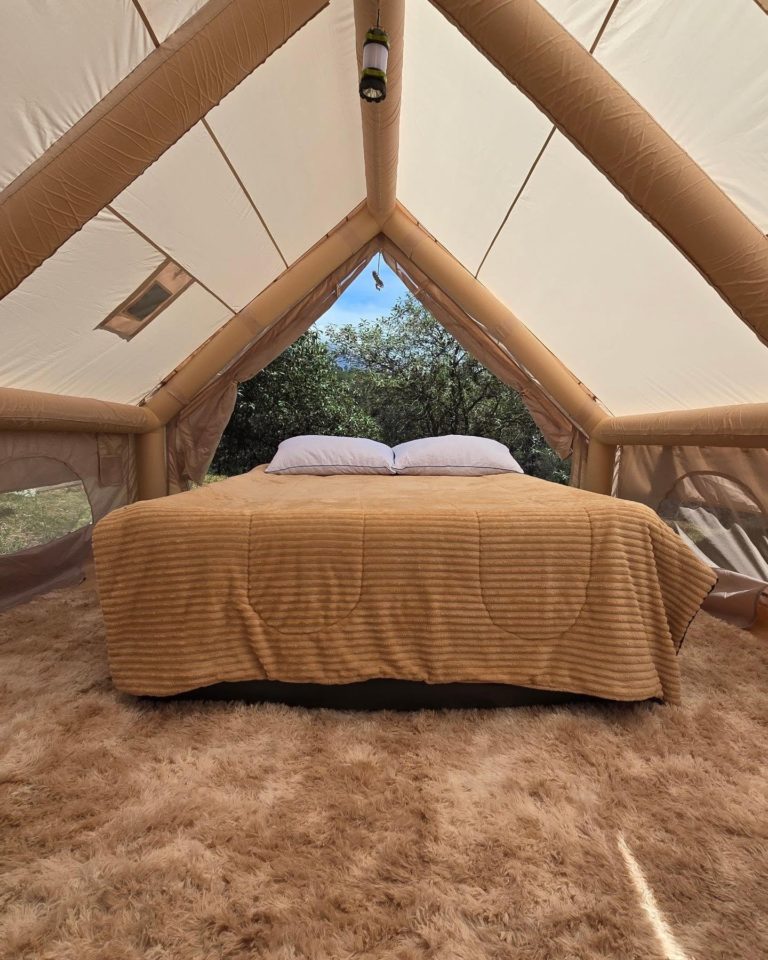 Y para quienes quieren vivir una experiencia completa, acampar en Alpinia es simplemente mágico. Dormir bajo las estrellas, con el susurro del bosque como arrullo, es algo que no se olvida. Por 490 pesos, el paquete incluye acceso durante sábado y domingo a las principales actividades, uso de regaderas y la libertad de respirar sin prisa. Es necesario llevar tienda propia, aunque también existe la opción de reservar una tienda “comfort”, equipada con colchón inflable tamaño queen, canasta de picnic y desayuno incluido. Es un pequeño lujo natural en medio del bosque, donde se mezcla el confort con lo esencial.