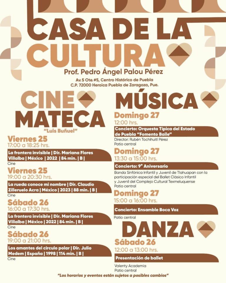 Y para quienes encuentran arte en la pantalla grande, la Cinemateca “Luis Buñuel” proyectará tres joyas cinematográficas: La frontera invisible, La rueda conoce mi nombre y Los amantes del círculo polar, ideales para cerrar cada día con reflexión y emoción.