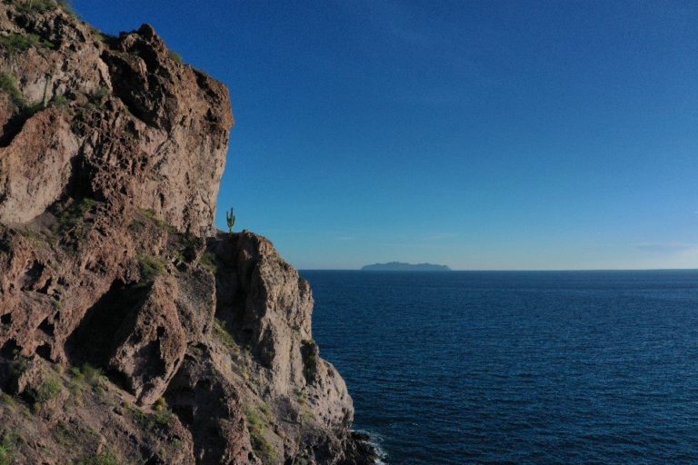 Una bahía encantadora que se divide en dos zonas con personalidades distintas: Kino Viejo, un pueblo tranquilo donde la vida gira en torno al mar, y Kino Nuevo, con un enfoque más turístico y moderno, con servicios pensados para los visitantes. Su forma de herradura se extiende por once kilómetros y regala playas amplias de arena blanca. El mar es sereno, cálido y de color azul profundo, hogar del pez vela, marlín, dorado y del imponente calamar gigante. El oleaje es estable, ideal para nadar, bucear o andar en moto acuática. Desde aquí salen recorridos rumbo a Isla Tiburón.