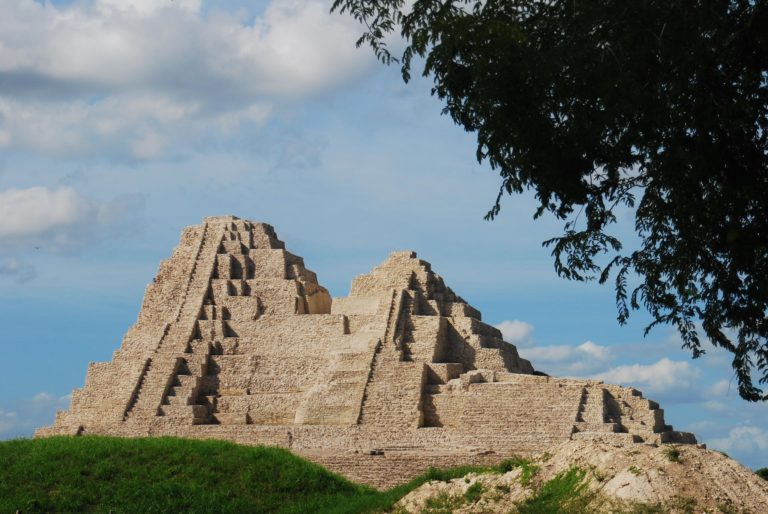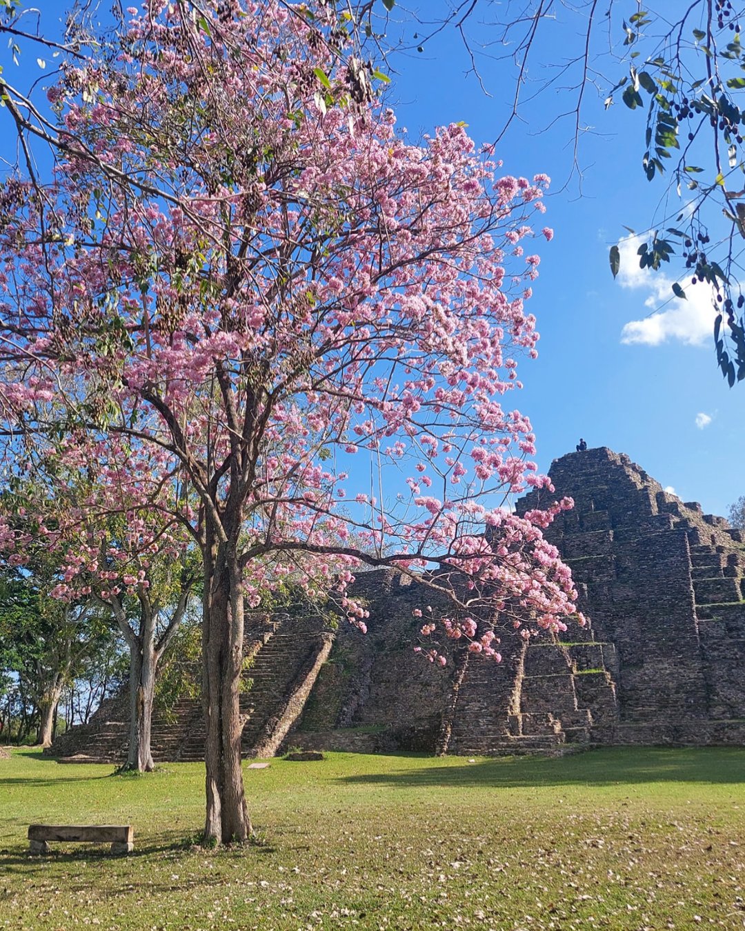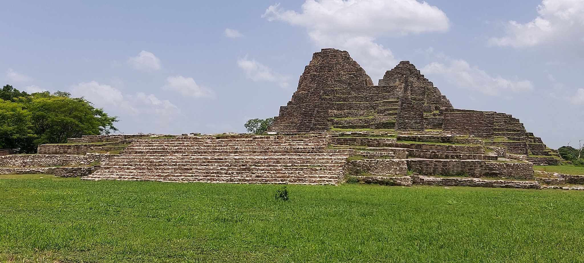 Al llegar al sitio, lo primero que llama la atención son las dos plazas principales. La Plaza Oriente alberga la imponente Pirámide Doble, también conocida como “Edificio 14”, con sus dos estructuras unidas que alcanzan una altura de 27 metros sobre una plataforma de unos 50 por 70 metros, lo que la convierte en la pirámide más alta conocida en Tabasco. En cuanto a la pirámide norte incluye otra pirámide interior, y la sur tiene una amplia escalinata pública.