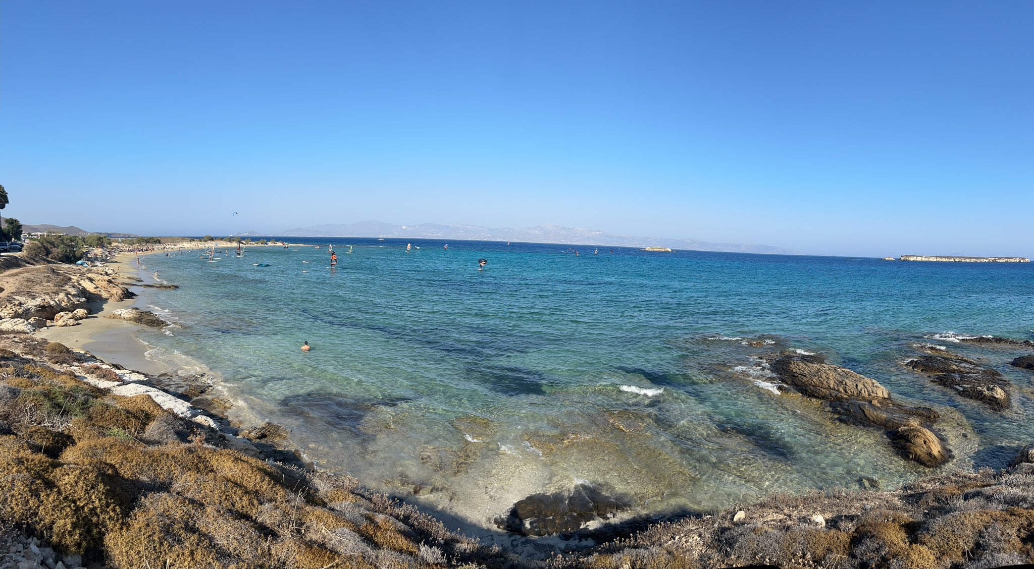Conocida por su arena suave y dorada, Golden Beach es una de las más populares de Paros. El mar aquí es poco profundo y cristalino, ideal para nadar, relajarse o practicar deportes acuáticos como windsurf y kitesurf. De hecho, la playa es famosa por albergar competiciones internacionales. Hay chiringuitos, alquiler de sombrillas y un ambiente activo pero no abrumador. Es perfecta para familias, parejas o viajeros solos que buscan disfrutar del sol con todas las comodidades cerca. Al final del día, el atardecer aquí es espectacular.