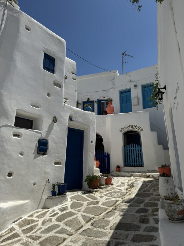 Escondido en las colinas del interior de la isla, Lefkes es uno de los pueblos más bonitos y auténticos de Paros. Caminar por sus callejones empedrados entre casas blancas, bugambilias y gatos dormilones es como viajar en el tiempo. La iglesia de Agia Triada domina el paisaje con su arquitectura imponente. Lefkes también es el punto de partida del antiguo sendero bizantino que conecta con otros pueblos. Es un lugar para bajar el ritmo, probar comida casera y disfrutar de la tranquilidad del campo griego.