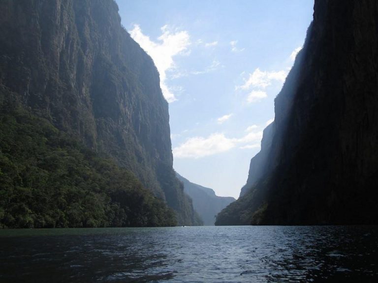 El Cañón del Sumidero es una de esas maravillas que quitan el aliento con solo verla. Se alza imponente a lo largo del río Grijalva, con paredes verticales que alcanzan hasta los 1,000 metros de altura, como una catedral natural tallada por el tiempo y el agua. Recorrerlo en lancha es una experiencia imprescindible: el motor se apaga y solo queda el eco del viento, el sonido de aves rapaces en vuelo y el susurro del agua golpeando la piedra.