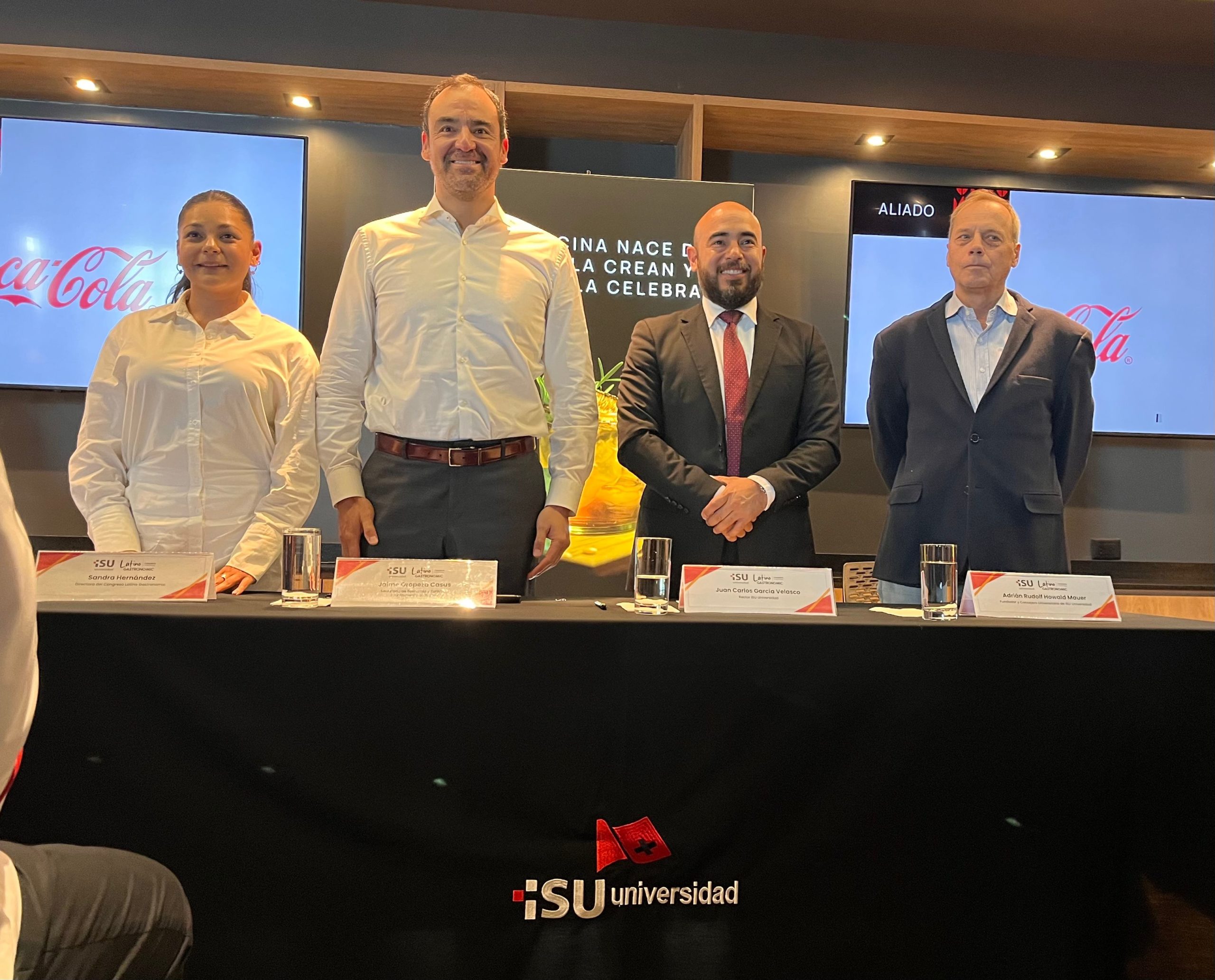 En el presídium participaron Sandra Hernández, directora de Latino Gastronomic; Jaime Oropeza, secretario de Economía y Turismo de Puebla; Adrián Howald, fundador y consejero universitario de ISU Universidad; y Juan Carlos García, rector de la institución.