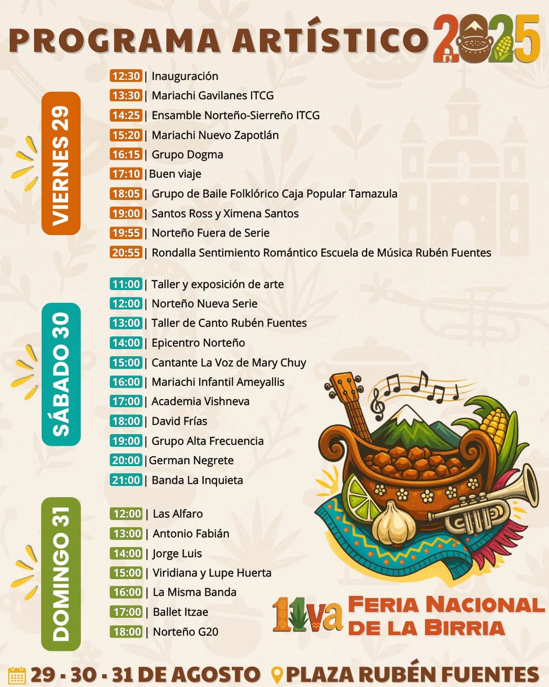 Durante tres días, los visitantes disfrutarán de música, cultura, tradición y sabor. Habrá platillos típicos acompañados de eventos culturales como mariachis, bandas de norteños, bailes folclóricos, ballet, talleres de canto, exposiciones de arte y una gran expo artesanal que resaltará las raíces y el talento local.