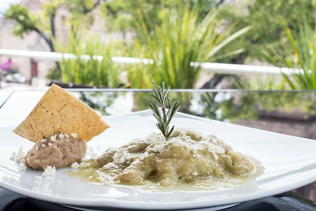 El histórico Hotel Juaninos ocupa lo que fue el Real Hospital de San Juan de Dios en el siglo XVII, frente a la Catedral. Desde su restaurante en la azotea, la vista a la catedral es inigualable. Aquí se sirven platillos con creatividad, como su desayuno estrella: una tortilla rellena con huevo frito, bañada en salsa verde con chicharrón y queso ranchero. Una versión gourmet del desayuno cotidiano. Instagram @hoteljuaninos