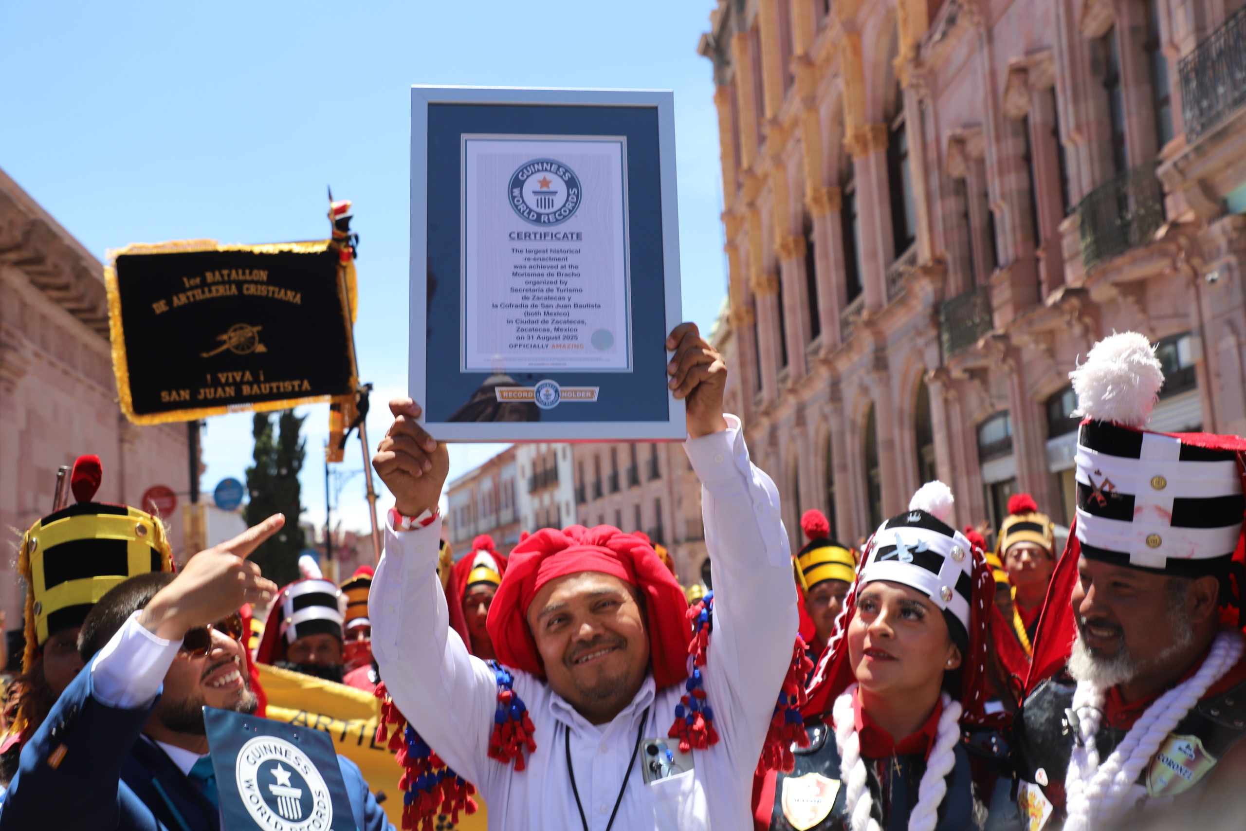 La entrega oficial del certificado Guinness World Records se llevó a cabo al final del desfile, de manos de Alfredo Arista, juez de la organización, e Ingrid Rodríguez, enlace comercial, quienes otorgaron el reconocimiento al gobernador David Monreal Ávila, acompañado por el secretario de Turismo, Le Roy Barragán Ocampo. También asistieron autoridades federales como Miguel Aguíñiga Rodríguez, representante de la Secretaría de Turismo de México, y Rafael Flores López, presidente de la Cofradía de San Juan Bautista, responsables del evento.