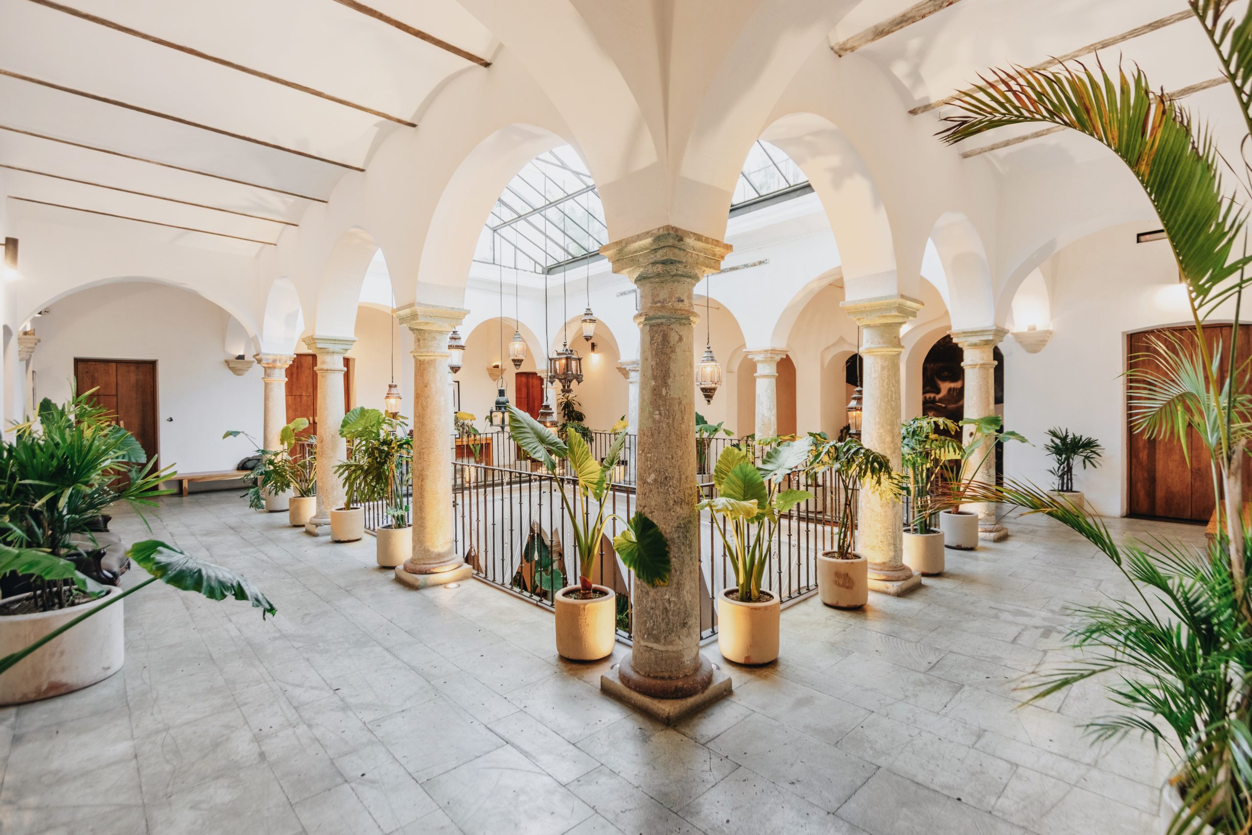 La arquitectura conserva su espíritu y lo lleva al presente: techos abovedados, herrería antigua, muros blancos y una paleta discreta que resalta texturas y proporciones con elegancia. Las habitaciones reflejan un minimalismo cálido donde maderas tropicales, textiles blancos y cantera mate se mezclan con la luz que baja del domo central. Los espacios fueron pensados para mantener el silencio, con recorridos claros entre terrazas y áreas comunes, haciendo que la casa respire con armonía. Desde lo alto, Santo Domingo y la Catedral se asoman como recordatorio de identidad: el hotel mira a Oaxaca y Oaxaca lo abraza.