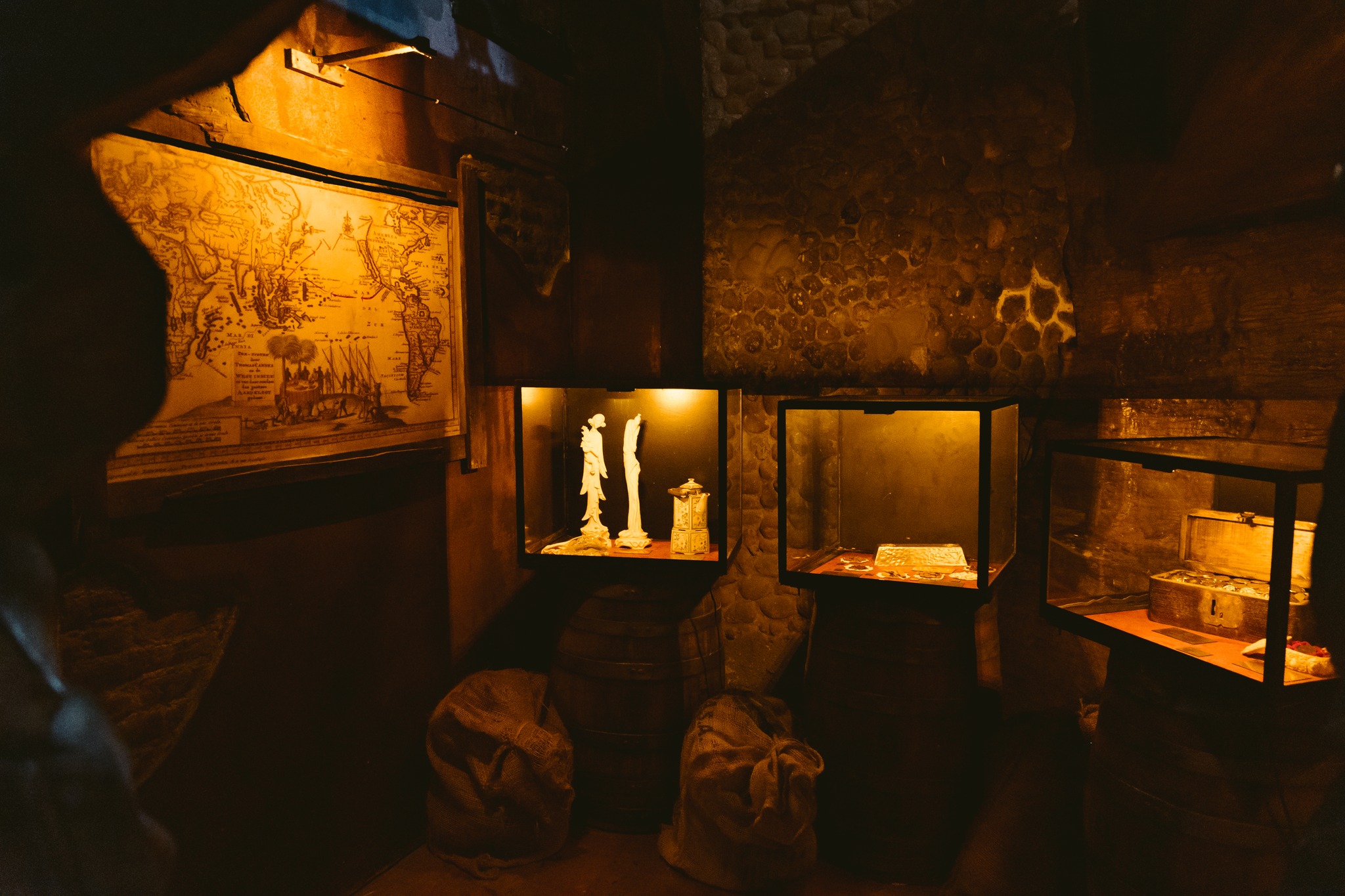 - Una tienda del tesoro con recuerdos especiales: monedas, mapas, banderas y artefactos llenos de historia.