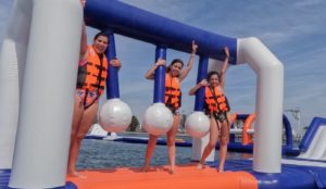 El parque cuenta con una amplia variedad de juegos inflables, entre ellos toboganes, plataformas de salto, muros de escalada, columpios, trampolines y circuitos de equilibrio. En total, dispone de decenas de estructuras pensadas tanto para quienes buscan adrenalina como para quienes prefieren actividades más tranquilas. Uno de sus atractivos principales es el reto físico y lúdico que supone recorrer el circuito completo sin caer al agua.