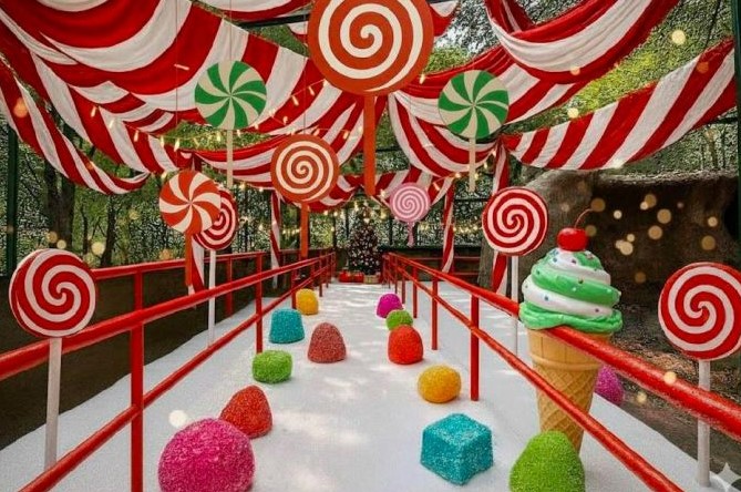 El recorrido del Bosque Navideño estará lleno de rincones ideales para tomarse fotos, con paradores distribuidos a lo largo del parque y escenarios como un túnel de bienvenida, una casa de jengibre, candyland, una cueva glaciar, arcos mágicos y un gran árbol de Navidad, entre otras sorpresas. En ciertos horarios, habrá lluvias de burbujas y nevadas artificiales que reforzarán el ambiente festivo.