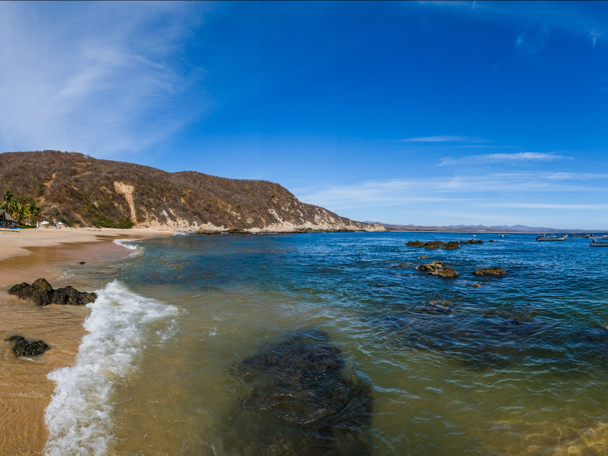 La bahía de Tehuamixtle destaca por sus aguas claras y calmadas, perfectas para nadar, hacer esnórquel o simplemente dejarse llevar mientras cae la tarde. El 31 de diciembre, el cielo se pinta de tonos dorados que se reflejan en el mar, regalando un escenario inolvidable para decir adiós al año.
