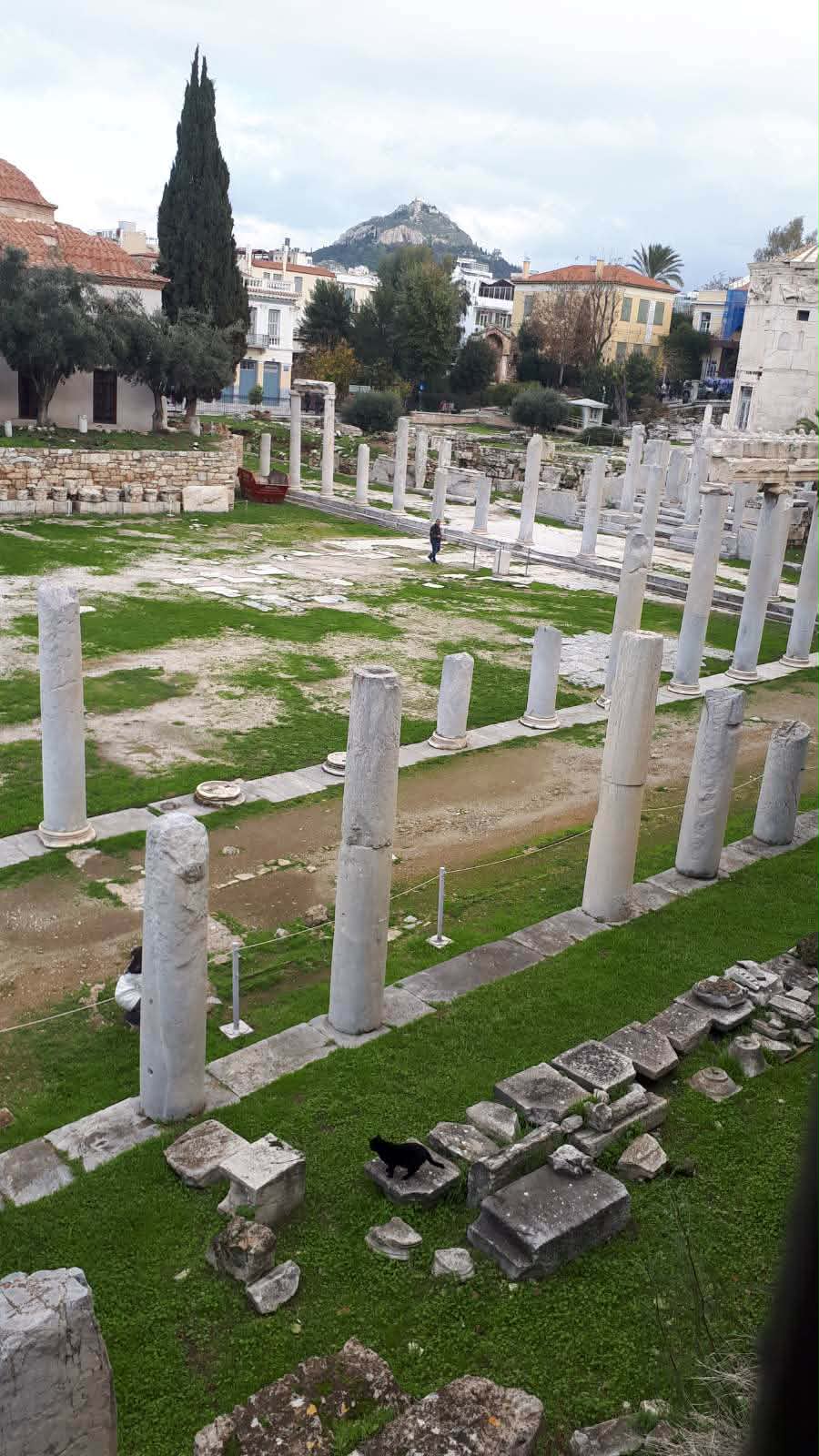 La Ágora Romana es más pequeña y menos conocida, pero tiene su encanto. Construida en época romana, destaca la Torre de los Vientos, un reloj de viento, sol y agua realmente curioso. Es un rincón muy fotogénico, con columnas, mosaicos y una sensación de paz en medio del bullicio de la ciudad. Perfecta para una visita rápida si te gustan las cosas menos masificadas. Desde aquí ves también la Acrópolis asomando.