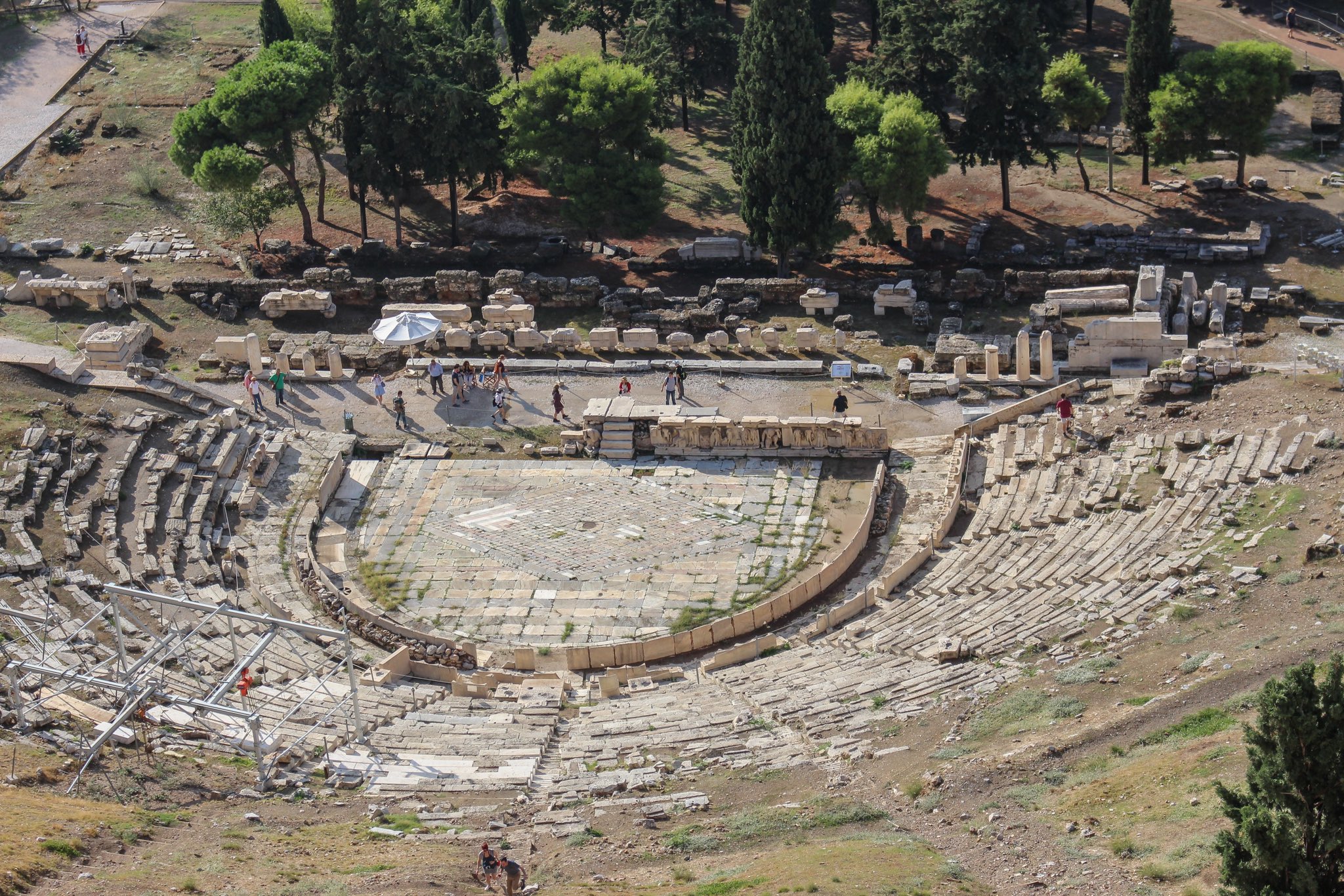 Este es el teatro más antiguo del mundo, donde nacieron las obras de Esquilo, Sófocles y Eurípides. Las gradas de piedra y los asientos de mármol para los VIP siguen ahí. Sentarse y pensar que hace 2500 años la gente veía tragedias y comedias aquí es mágico. Está en la ladera de la Acrópolis.
