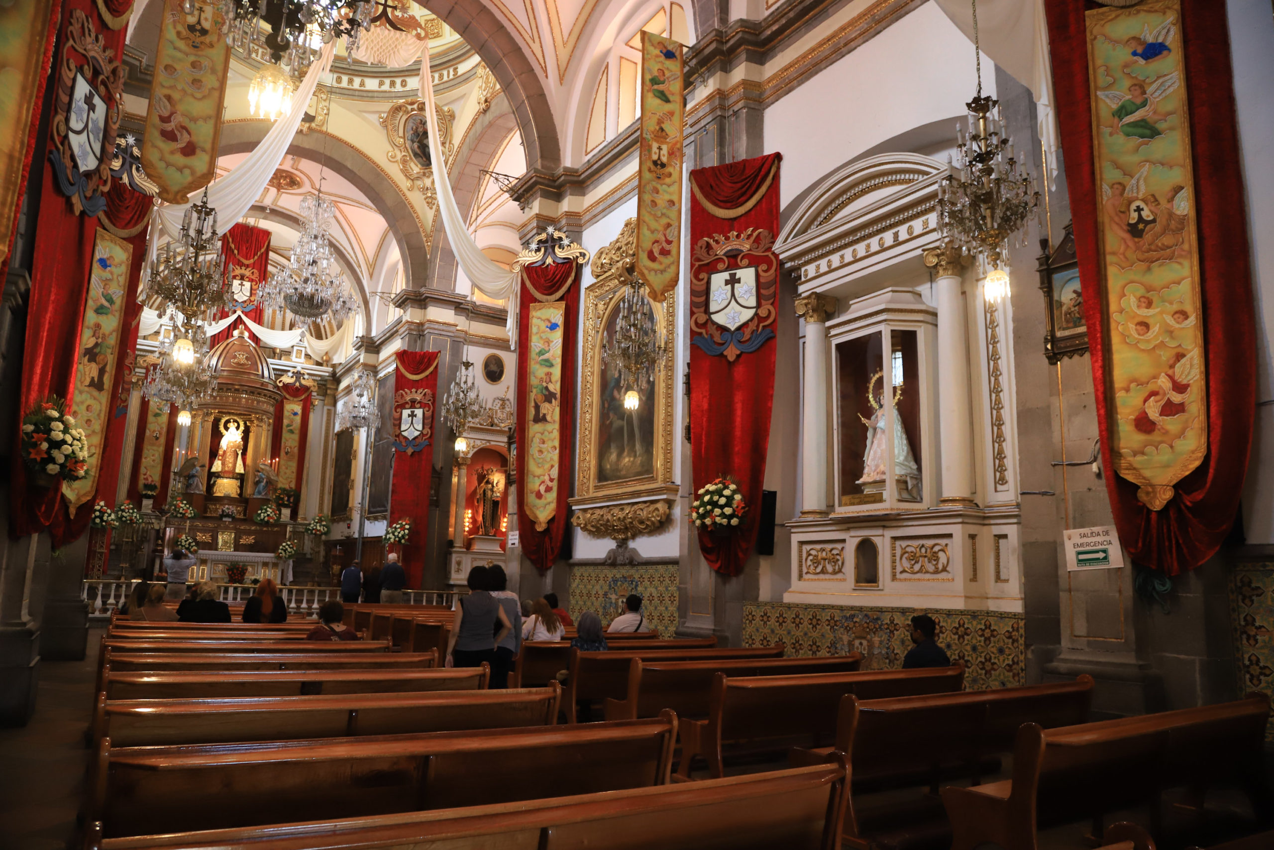 Con su portada elaborada llena de columnas y estatuas, esta iglesia del siglo XVII tiene una vibra más popular y cercana. La gente del barrio la llena en fiestas y procesiones. Adentro hay un altar mayor bonito y muchas imágenes queridas. Es de esas donde sientes la fe cotidiana, con veladoras y promesas. Está en una zona animada, y siempre hay movimiento alrededor que le da vida.